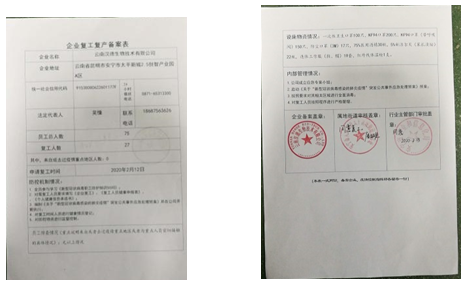 2月2日:1.上午9:15分,配合福保祥瑞公司接受安寧市工信局、安寧市疾控中心檢查組進(jìn)行復(fù)工復(fù)產(chǎn)準(zhǔn)備工作檢查;因消毒液、酒精、口罩、測溫儀物資稀缺、復(fù)工人員登記記錄還不夠全面等,要求繼續(xù)整改。2.經(jīng)多方籌集物資并對(duì)復(fù)工人員進(jìn)行詳細(xì)登記整改后,下午16:40分再次邀請(qǐng)檢查組對(duì)整改落實(shí)情況進(jìn)行復(fù)查。