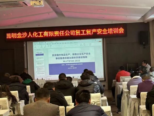 金沙人化工有限責任公司在迎接復(fù)工復(fù)產(chǎn)的重要時刻,邀請上級監(jiān)管部門東川區(qū)科技和信息化局的專業(yè)人員于2023年12月26日為公司全體員工開展安全教育培訓。
