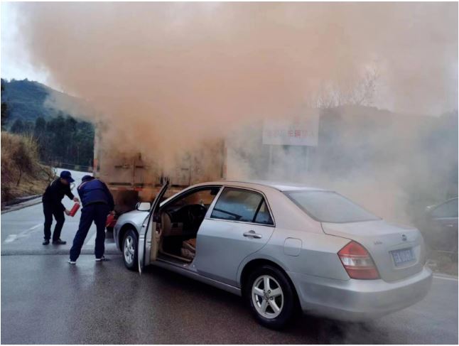 本次演練是模擬公司危貨運(yùn)輸車裝載成品后由安寧分公司后門駛出,一輛小轎車因右轉(zhuǎn)時車速過快,小轎車車頭追尾危貨運(yùn)輸車后貨廂尾部,導(dǎo)致小轎車車頭起火。駕駛員及押運(yùn)員在第一時間迅速向公司報告并報警,立即處置初起火災(zāi)。公司接到事故報告后立即對事故進(jìn)行分析研判后果斷決定組織應(yīng)急隊(duì)伍到現(xiàn)場開展應(yīng)急救援處置。經(jīng)過現(xiàn)場人員全力有序配合,迅速把初起火災(zāi)撲滅,未造成人員傷亡和過大的財產(chǎn)損失。演練過程按照應(yīng)急演練方案進(jìn)行,組織有力、分工明確、處置得當(dāng),達(dá)到預(yù)期效果。