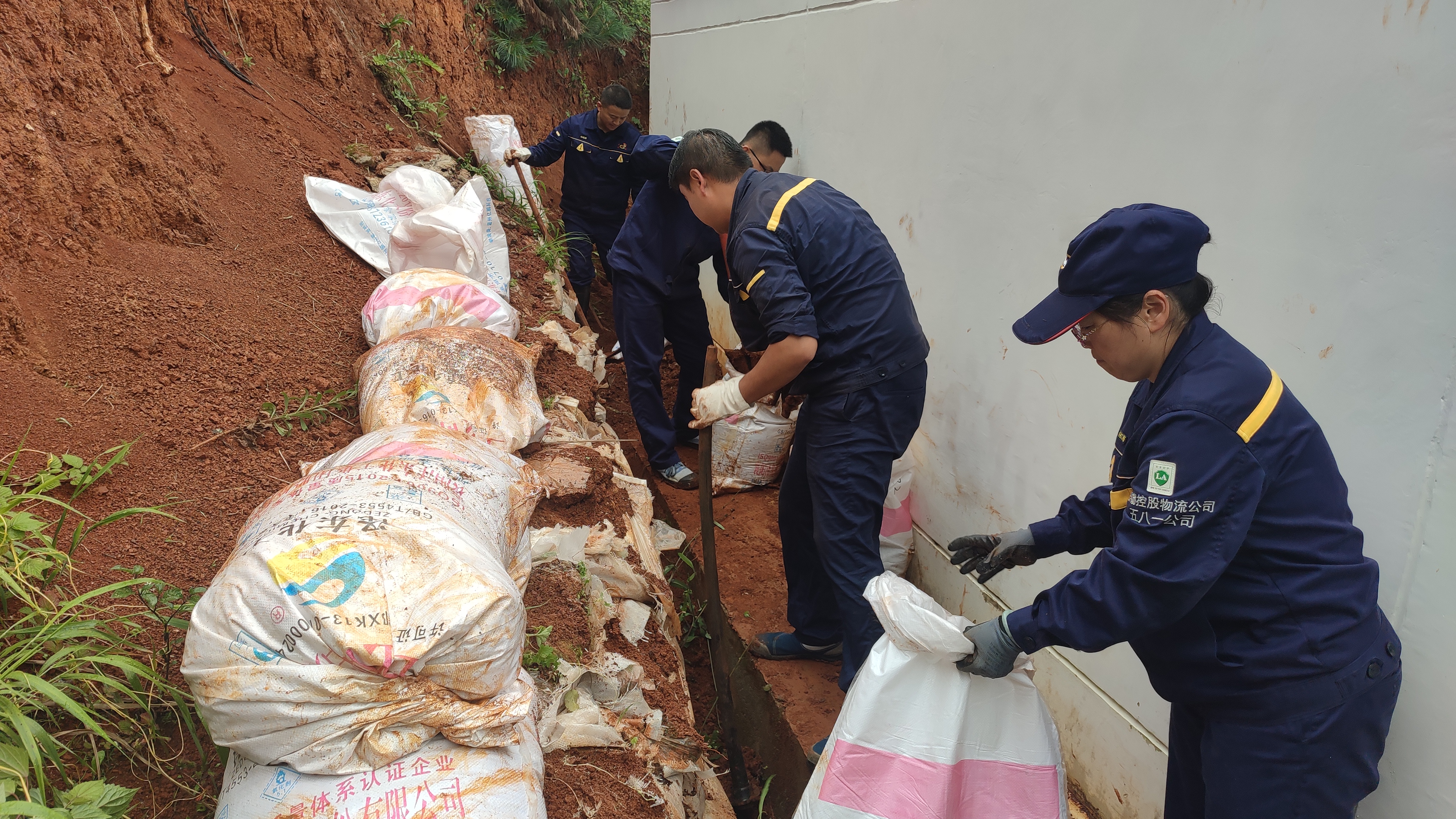 因近期五八一片區(qū)降雨量較多,導(dǎo)致35千伏變電站背后土堤滑坡、排水困難,存在較大安全隱患。黨員同志們積極響應(yīng)黨支部的號(hào)召,迅速到達(dá)35千伏變電站開展防洪度汛活動(dòng)。活動(dòng)中,突擊隊(duì)分成兩個(gè)小組,分別對(duì)35千伏變電站房子邊坡、溝道進(jìn)行清理疏通、加固,用編織袋、鋤頭、鐵鏟等工具物資,對(duì)度汛薄弱環(huán)節(jié)和存在安全隱患的地區(qū),采取開溝、疏通、夯實(shí)等方式妥善處理。