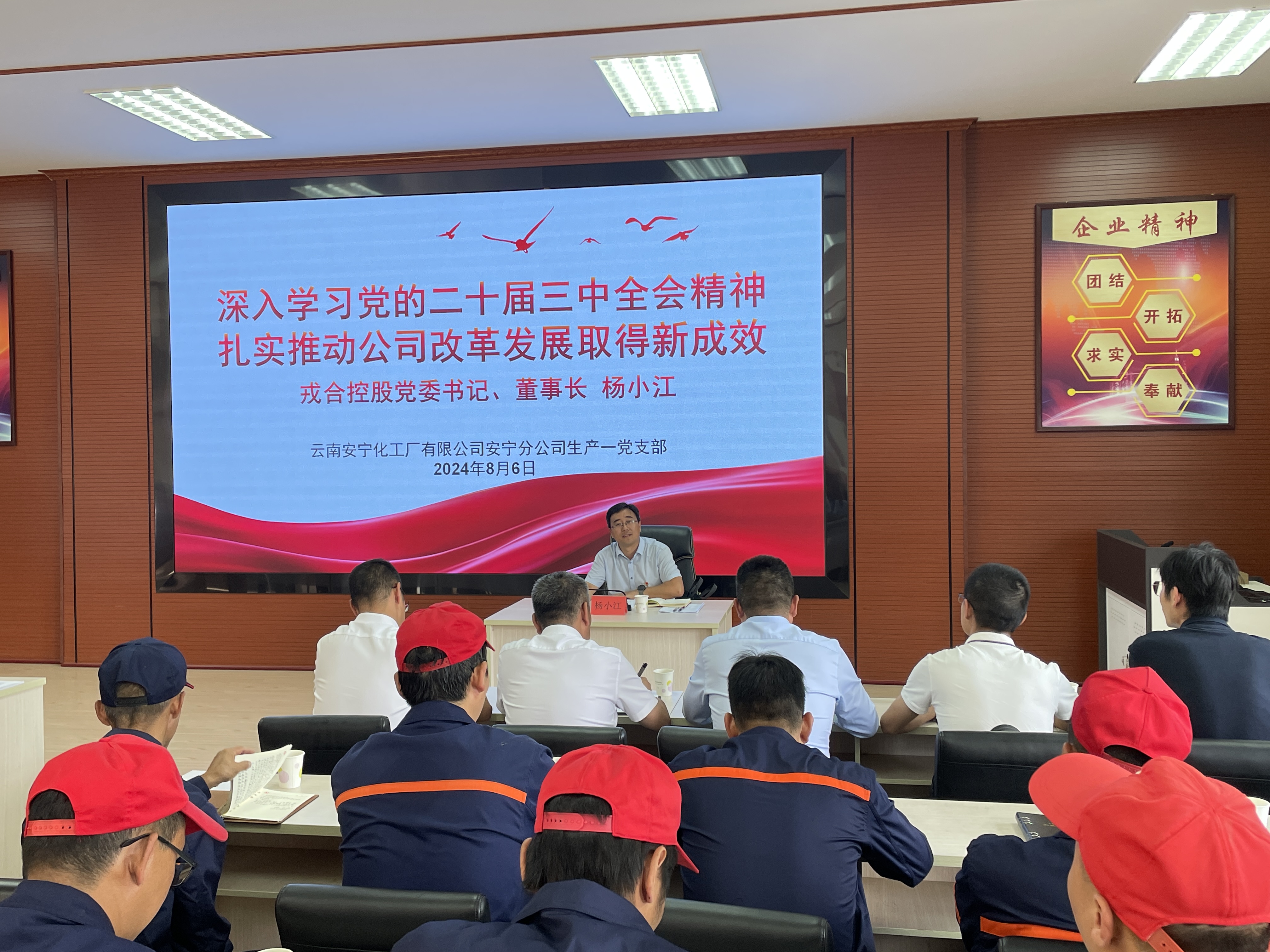 調(diào)研組列席旁聽公司2024年第5次黨委理論學(xué)習(xí)中心組專題學(xué)習(xí)會議,楊小江書記到基層黨建聯(lián)系點安寧分公司生產(chǎn)一黨支部講授題為《深入學(xué)習(xí)黨的二十屆三中全會精神 扎實推動公司改革發(fā)展取得新成效》的專題黨課,調(diào)研組還聽取了公司生產(chǎn)經(jīng)營、黨風(fēng)廉政建設(shè)、意識形態(tài)等工作匯報。